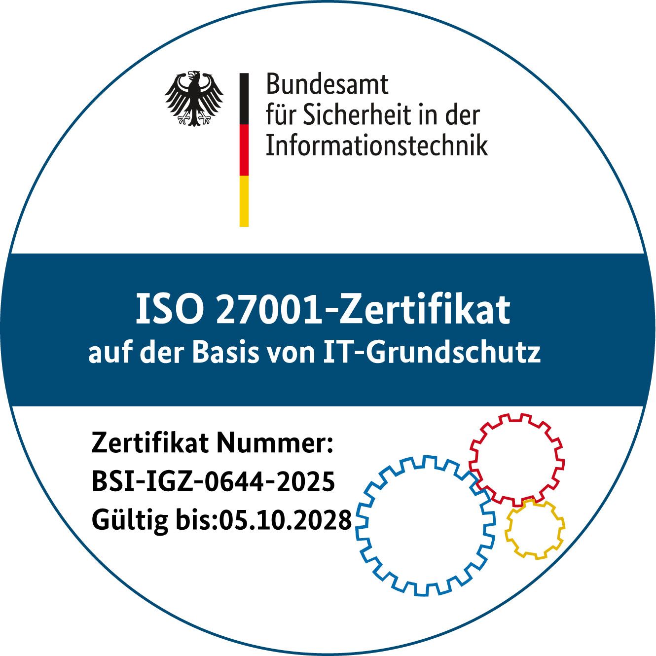 Auf den Schutz der uns anvertrauten Informationen legen wir großen Wert. Aus diesem Grund haben wir ein Informationssicherheitsmanagementsystem (ISMS) eingeführt, das erstmals im Jahr 2019 nach ISO 27001 auf der Basis von IT-Grundschutz zertifiziert worden ist. Das Zertifikat bestätigt, dass unser ISMS wirkungsvoll ist und seit der Erstzertifizierung im Jahr 2019 laufend weiterentwickelt wurde sowie mit jährlichen Überwachungsaudits verbunden ist. Das Zertifikat ist bis zum 5. Oktober 2028 gültig.